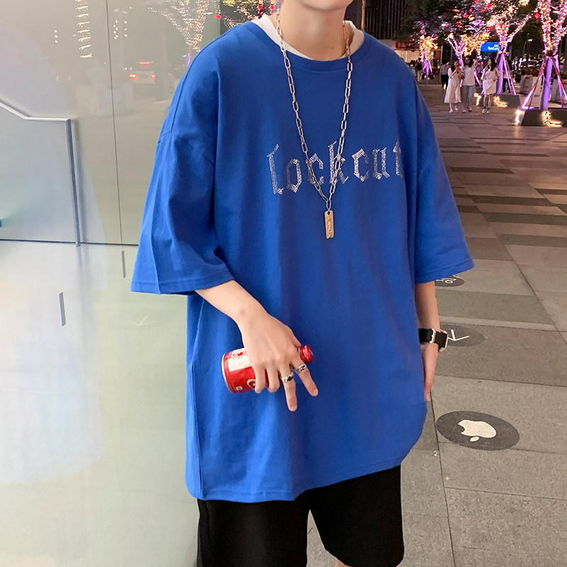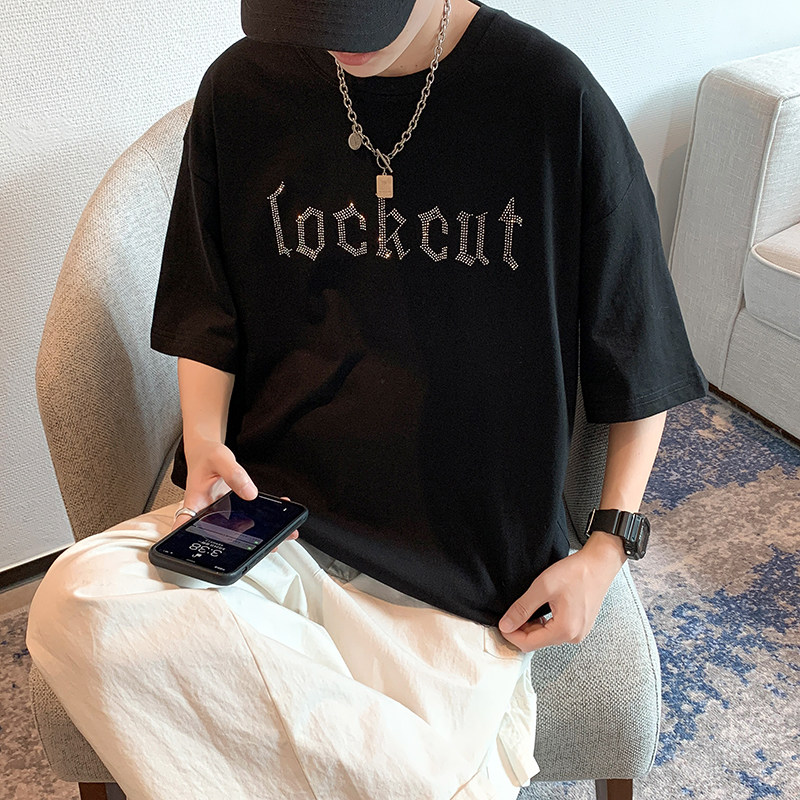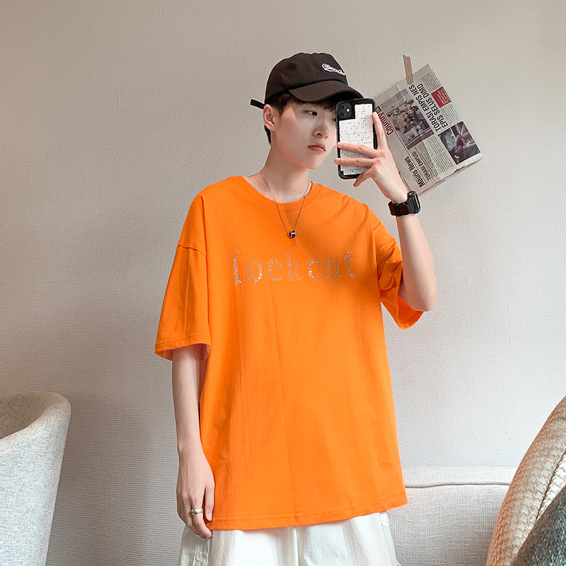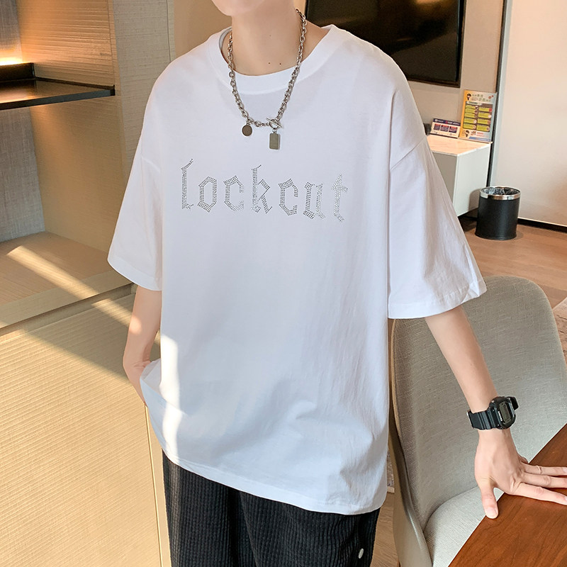 Net Red Short Sleeve T-Shirt Men Ins Superfire Tide Signs Trend 100 Hitch Easy Harbor Wind Casual Pure Cotton Alphabet Scalding Clothes
