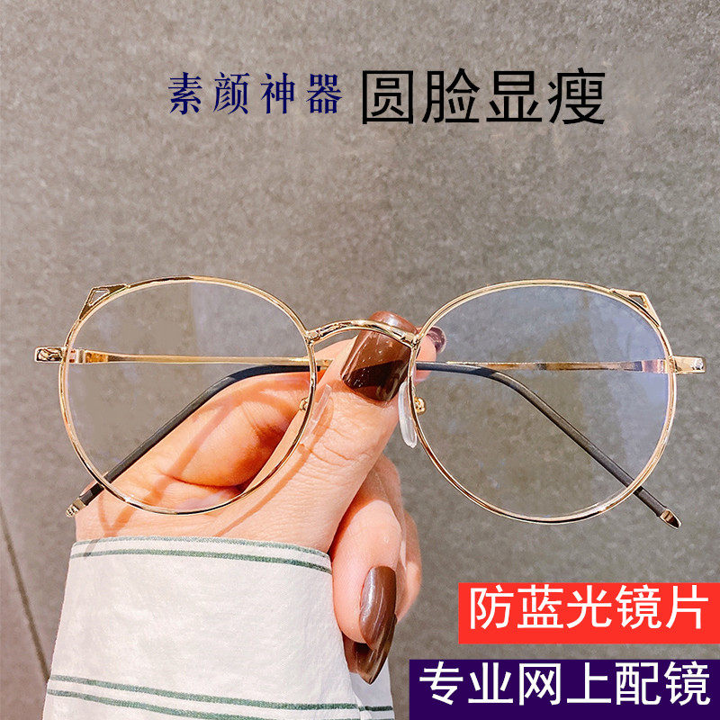 Full frame anti-blue light radiation glasses for men and women trendy plain face eye protection no degree flat light frame can be equipped with myopia glasses