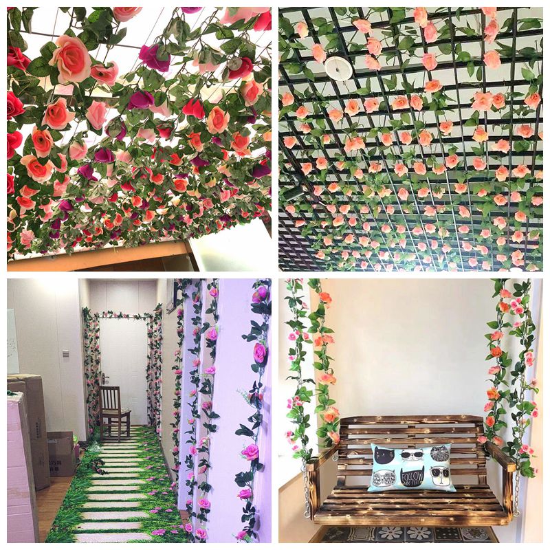 Emulation rose rattan bar wall-mounted fake flower vine water pipe air conditioning tube indoor living room decorated suspended ceiling vine plant-Taobao