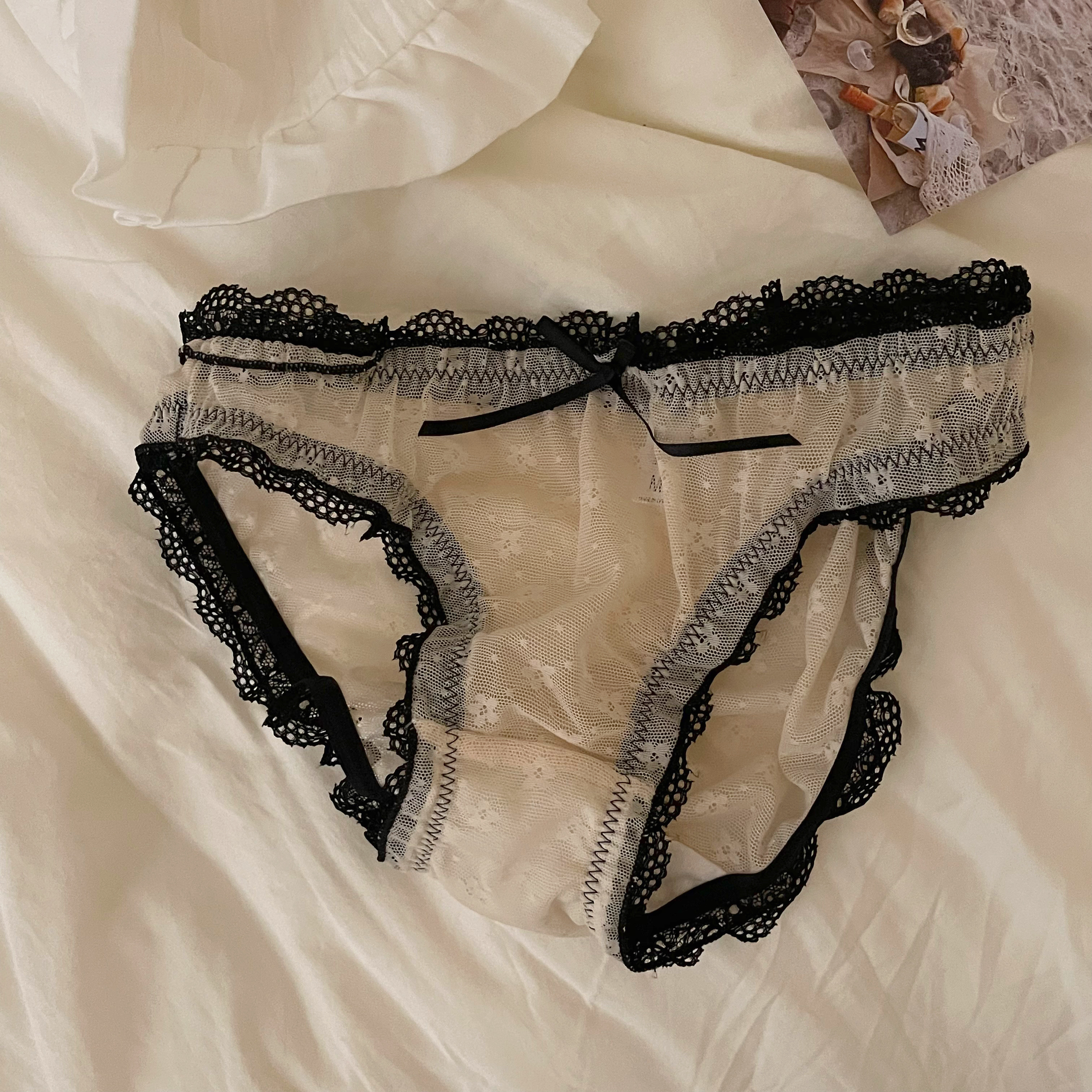 Day Ensemble Sweet Girl Hearts Full Lace Gentle Web Yarn Transparent Low Waist Sexy Triangle Briefs