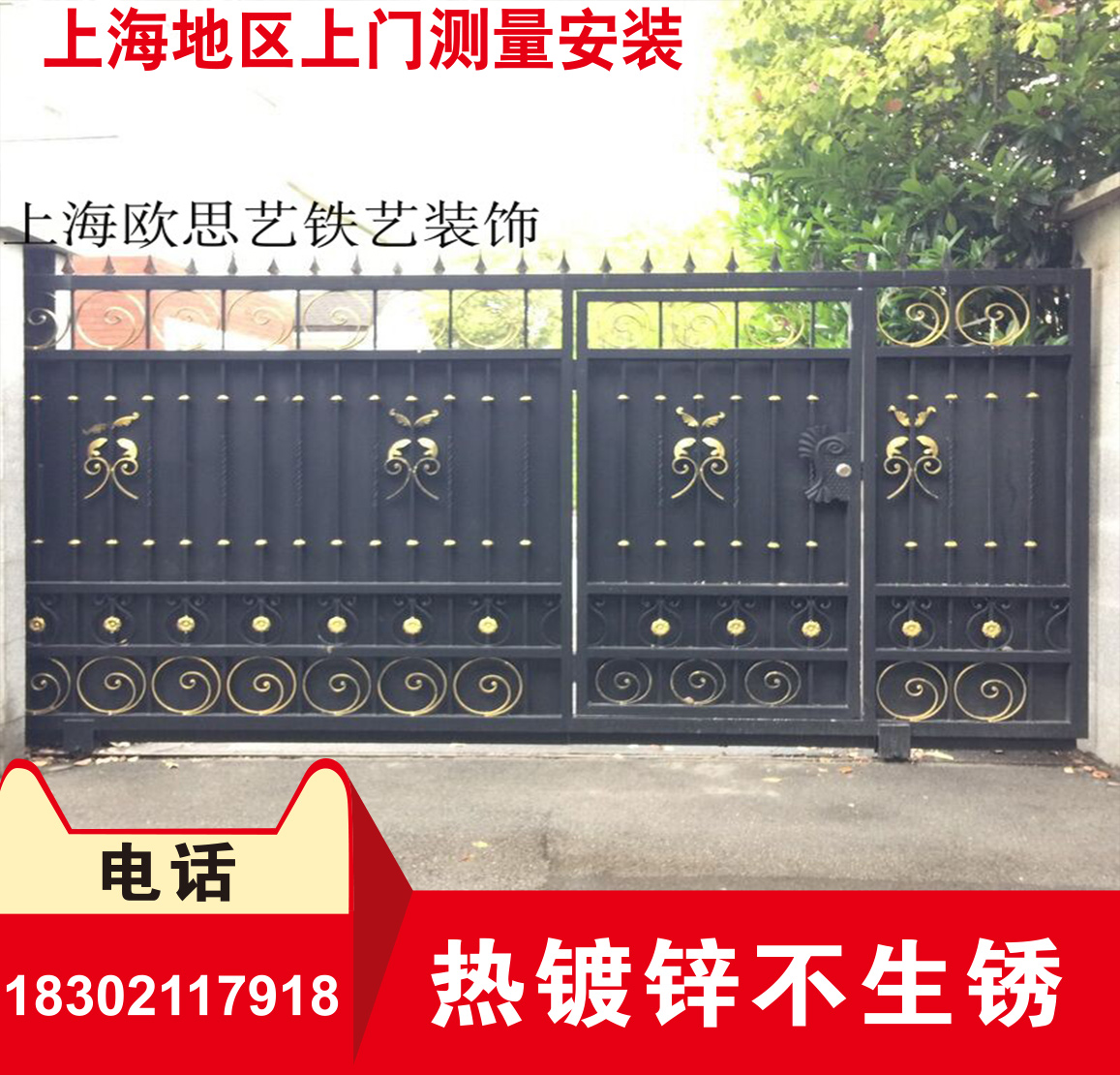 Shanghai iron gate courtyard villa door modern simple iron open door electric sliding door Chinese Iron Gate