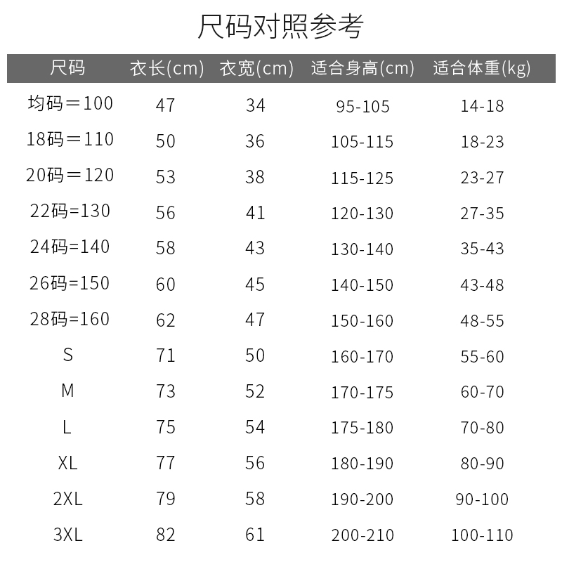 One Size 110 120 130 140 150 160 S M L XL XXL XXXL