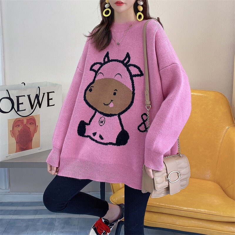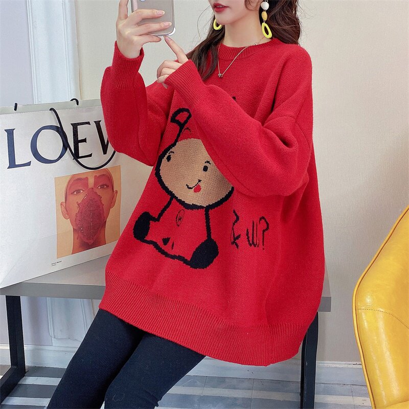 Pregnant women's autumn and winter clothes new large size fashion suit foreign style knitted bottoming shirt top winter thick sweater women