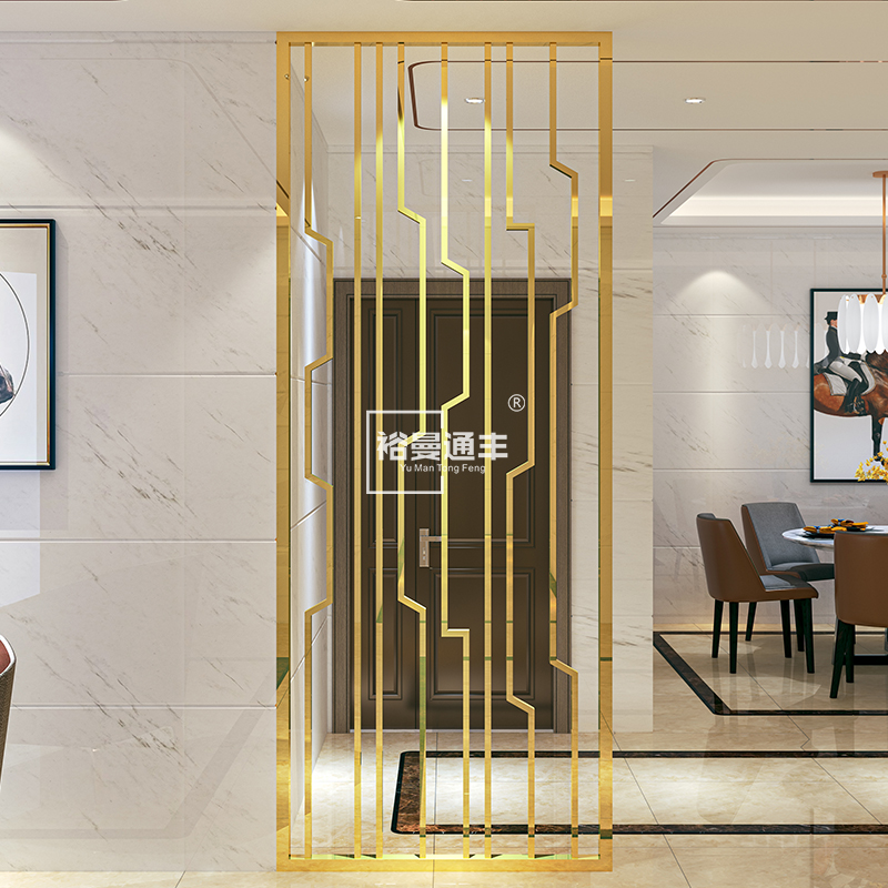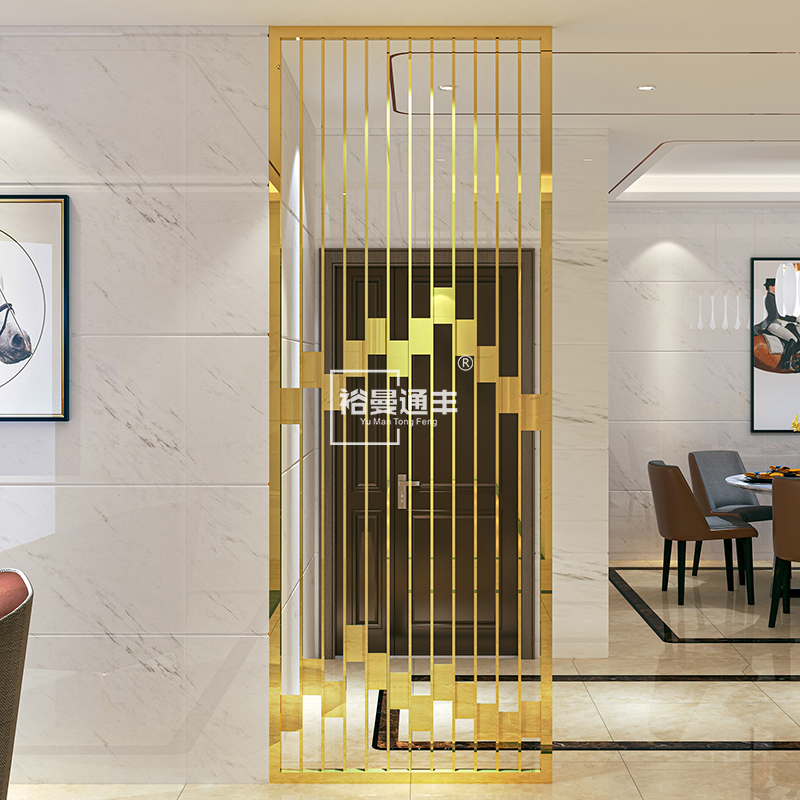 Hotel Villa Living Room Light Luxurious New Chinese Entry Metal Flower Lattice Titanium Alloy Stainless Steel Screen Xuanguan Partition Custom