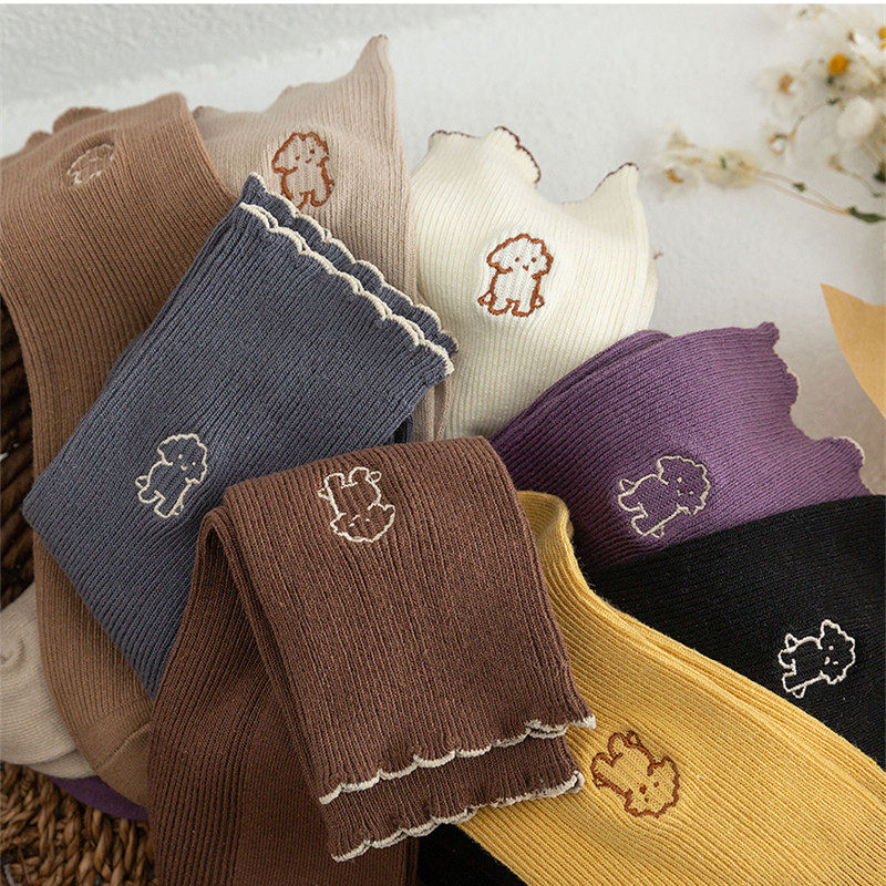 Crazy walking bubble socks female spring and autumn fungus edge lace puppy embroidery socks female spring and autumn mid-tube Korea