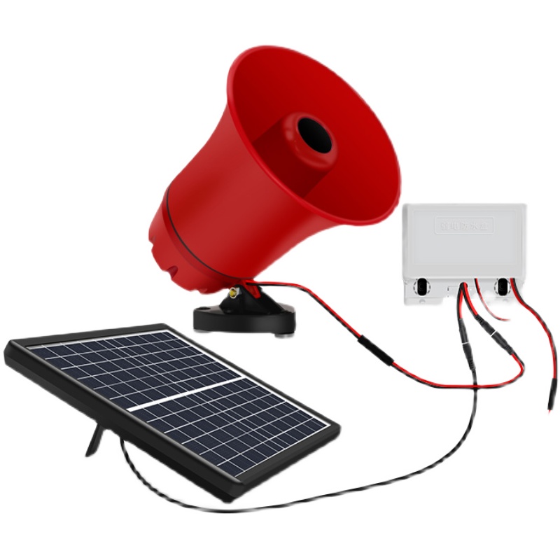Huge volume of outdoor scaring wild pig artifacts with sound solar drive lights flashing warning lights at night