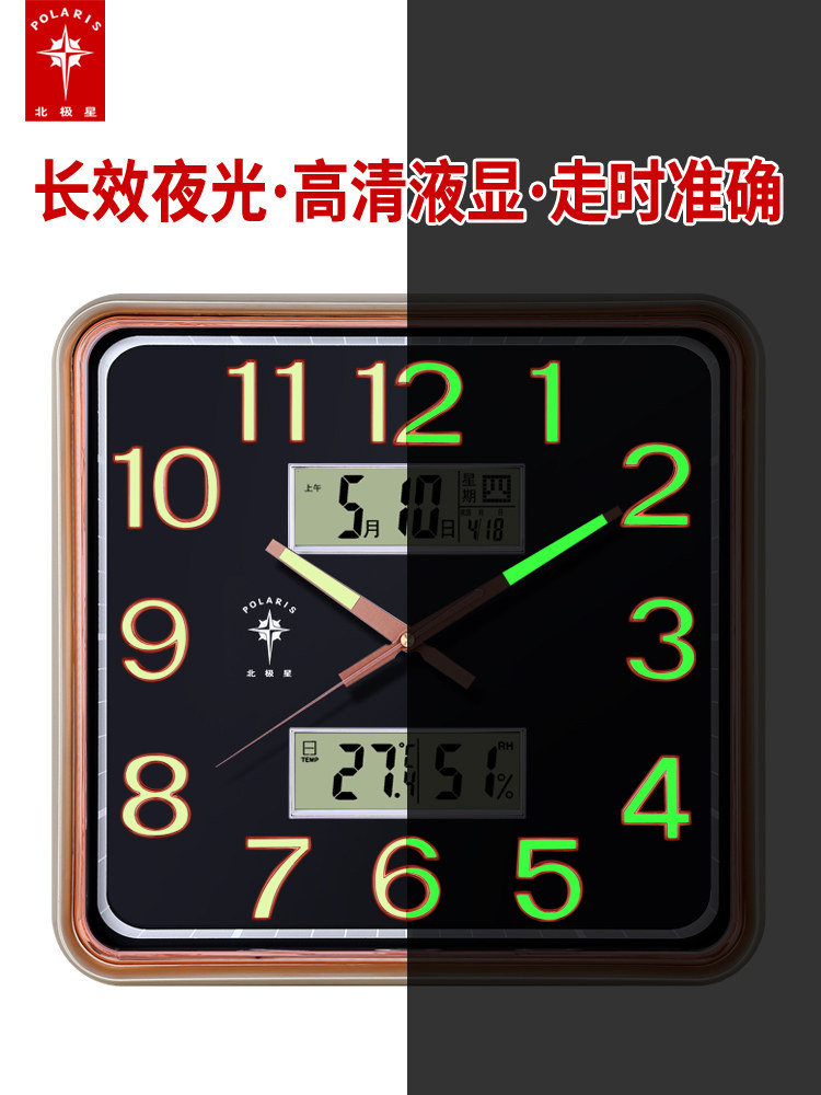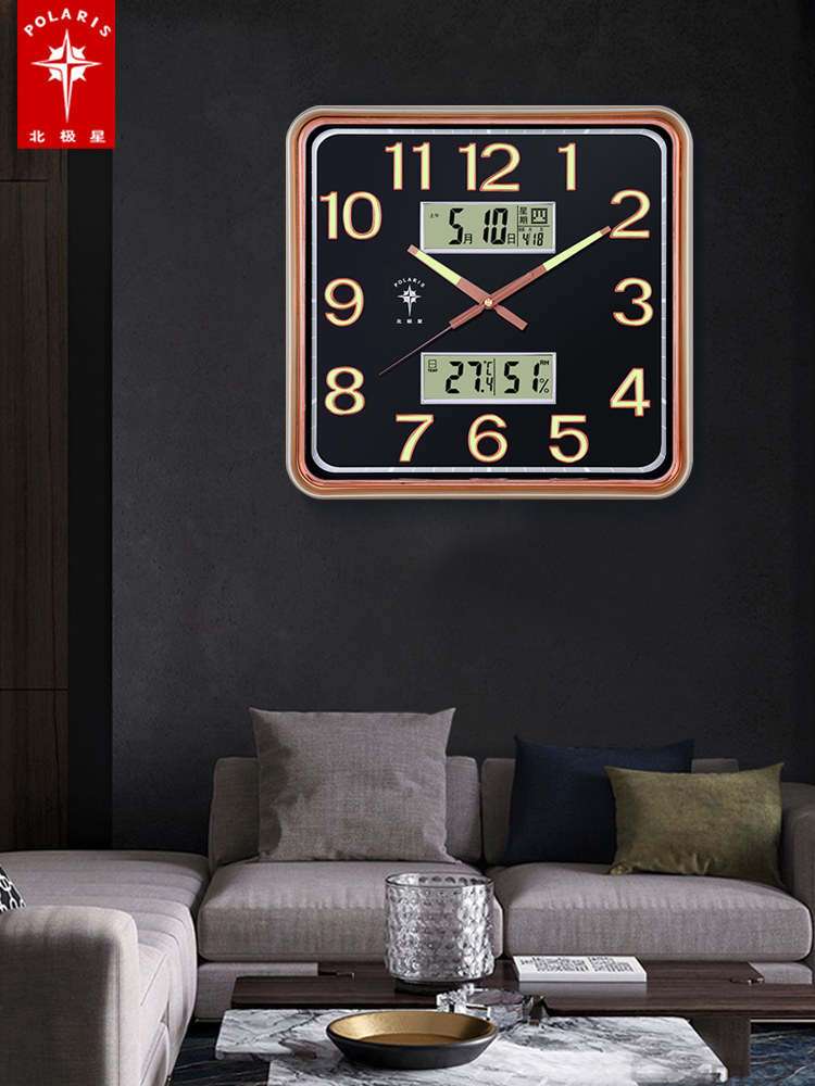 Polaris living room luminous square large wall clock home light luxury fashion clock simple electronic perpetual calendar quartz clock