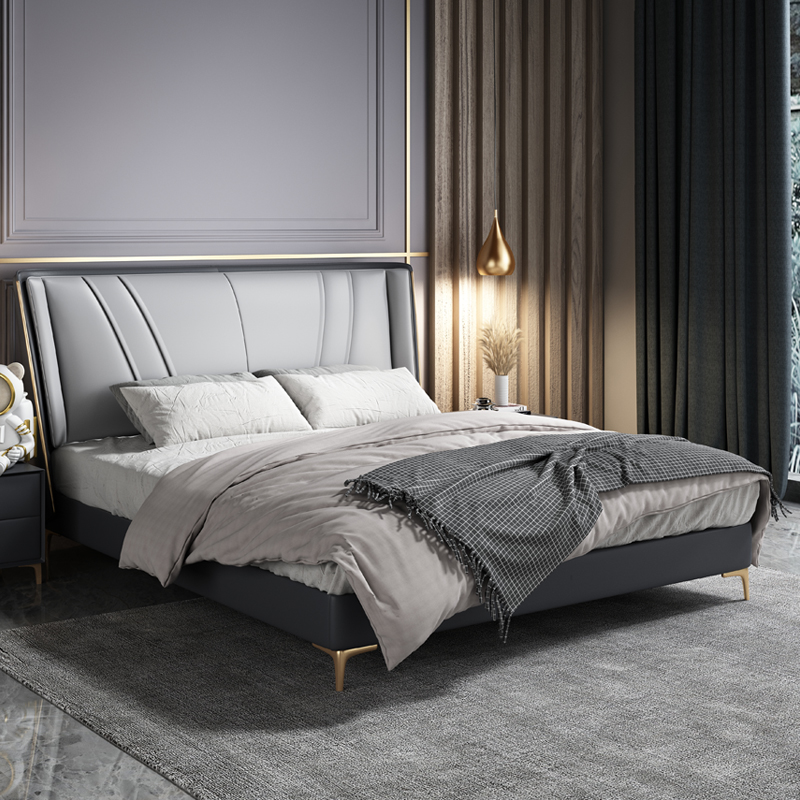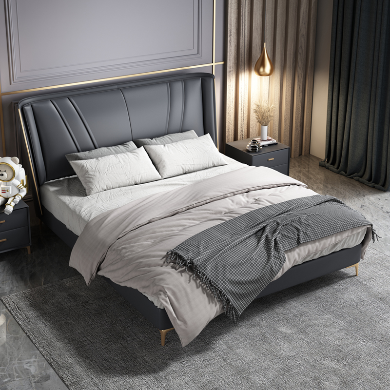 Italian Light Luxury Leather Bed Double Bed Modern Minima Small Household Genuine Leather Bed Master Bedroom Large Bed Storage Soft-covered Wedding Bed