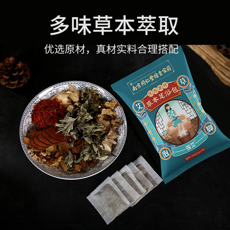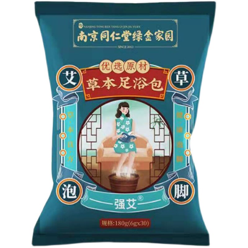 Nanjing Tongrentang green gold home wormwood ginger foot soaking traditional Chinese medicine bag to remove moisture to help sleep herbal foot bath powder bag