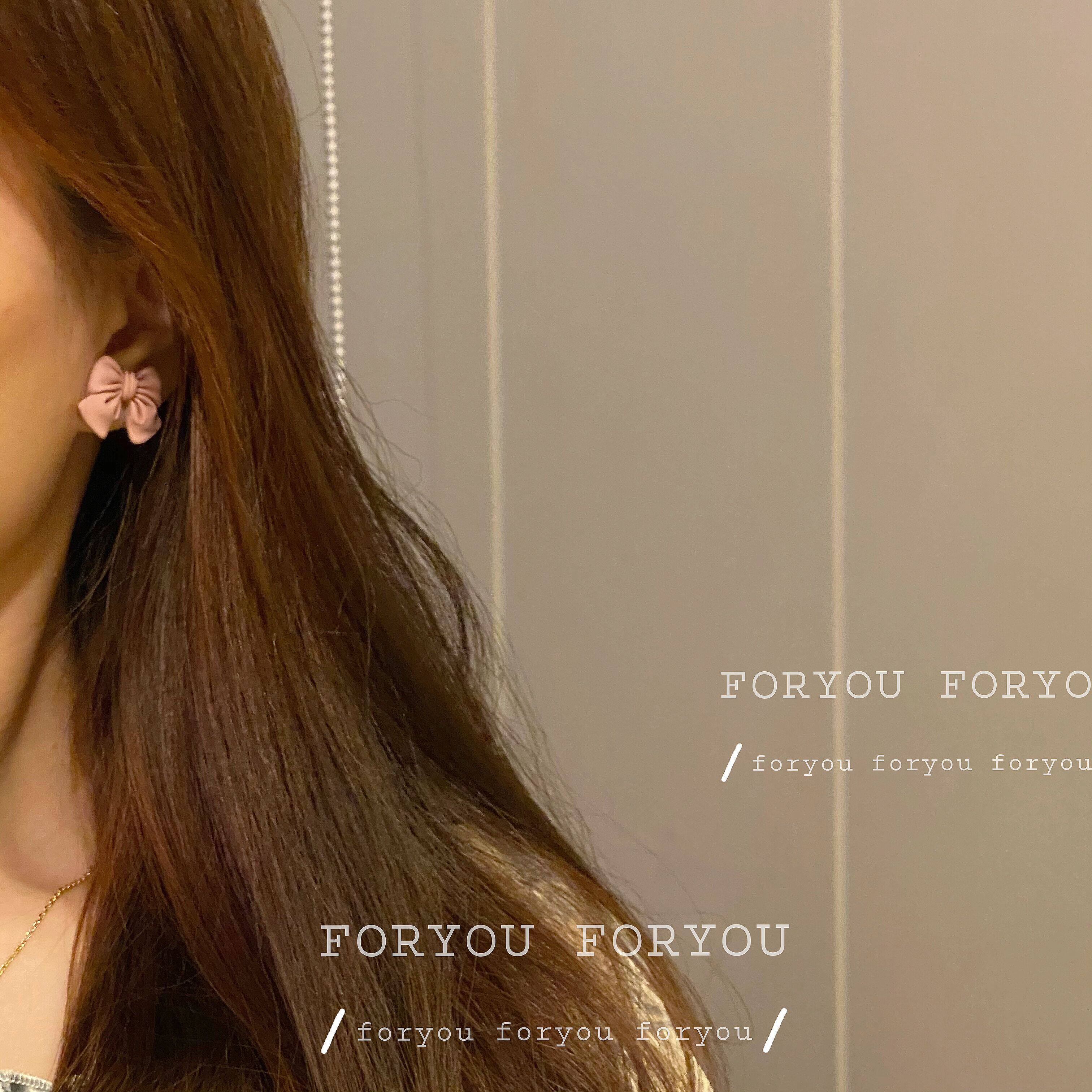 S925 Silver Needle South Korea Sweet Girl Asymmetrical Pink Butterfly Knot Love Ear Pin Girl Personality Earring Ear Clip