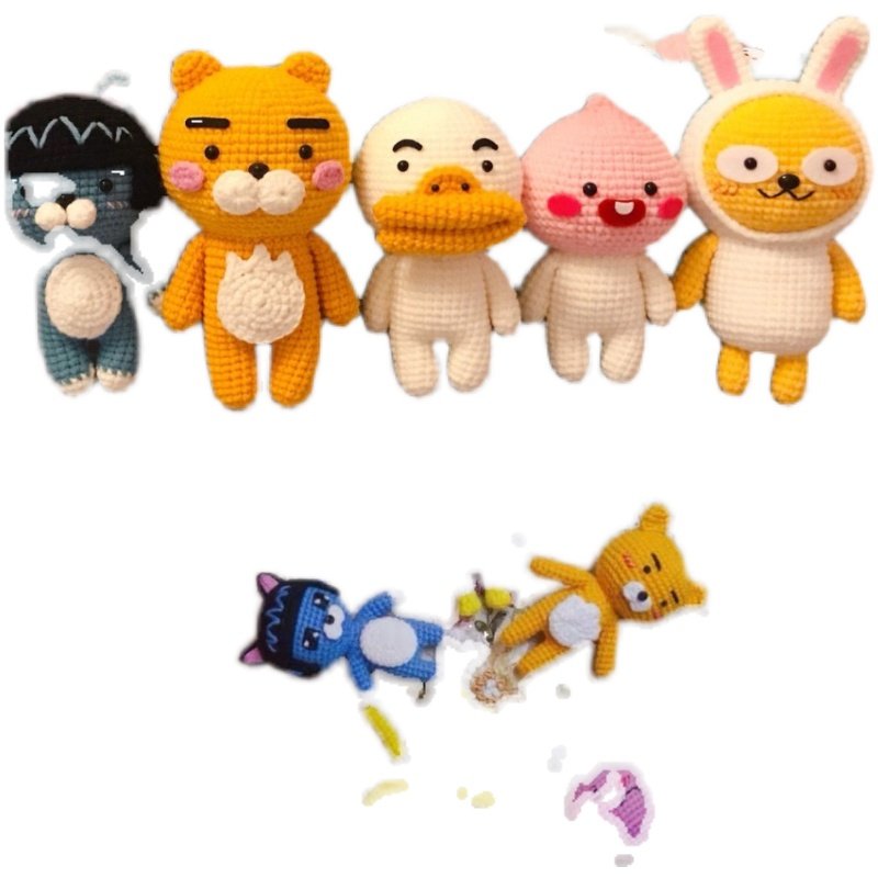 Kakao hook needle diagram diy unwrought hand doll hook knitting tutorial ass blue cat lion duck rabbit