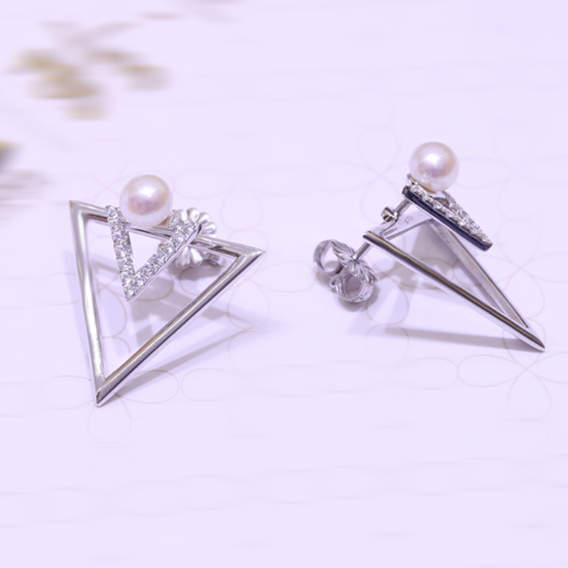 (China Gold) Zhenshang Silver Geometric Pearl Stud Earrings Fashion Design Sense Light Luxury Niche For Girlfriend