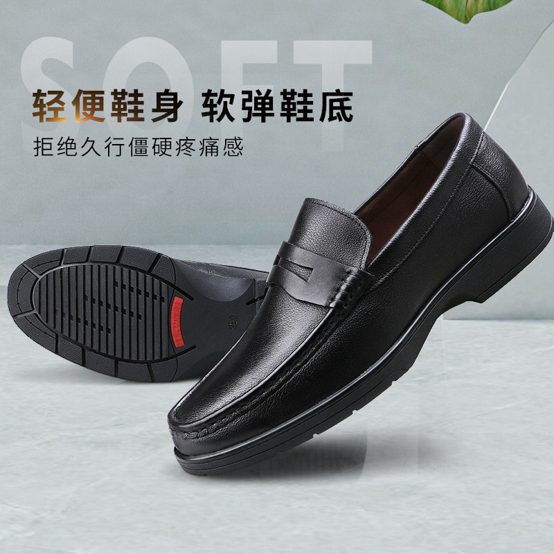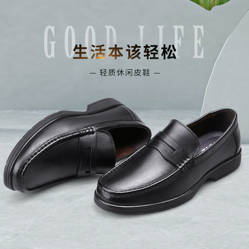 3515 strongman casual leather shoes men's leather breathable soft-soled dad shoes cover feet shock-absorbing black formal business men's shoes