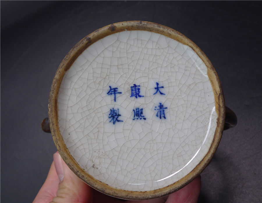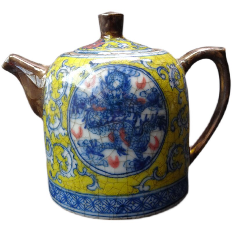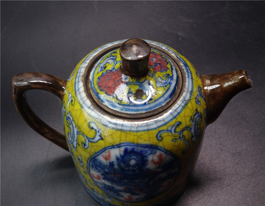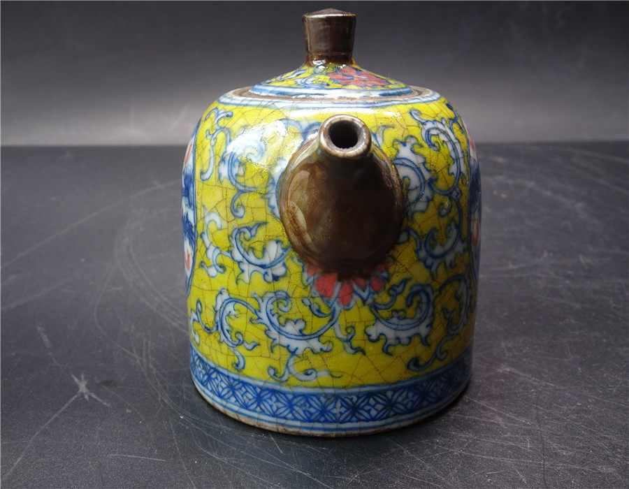 Colour ground green flower glazed red teapot Kangxi powder colored official kiln porcelain Dinner hand jug yellow earth old ceramic collection