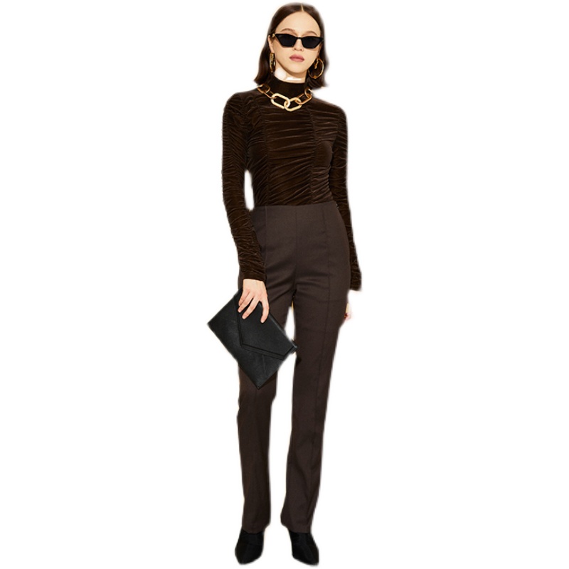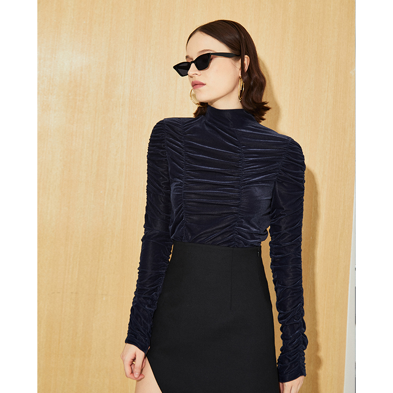 Z Boss Solid Ruffle Sleeve Body Velvet Beat Undershirt Korea Suede Slim long sleeves Spliced Blouse Women