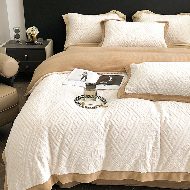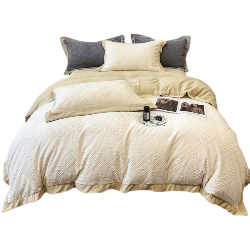 Class A baby velvet four-piece set European milk velvet thick coral velvet quilt cover plus velvet flannel men's winter bedding