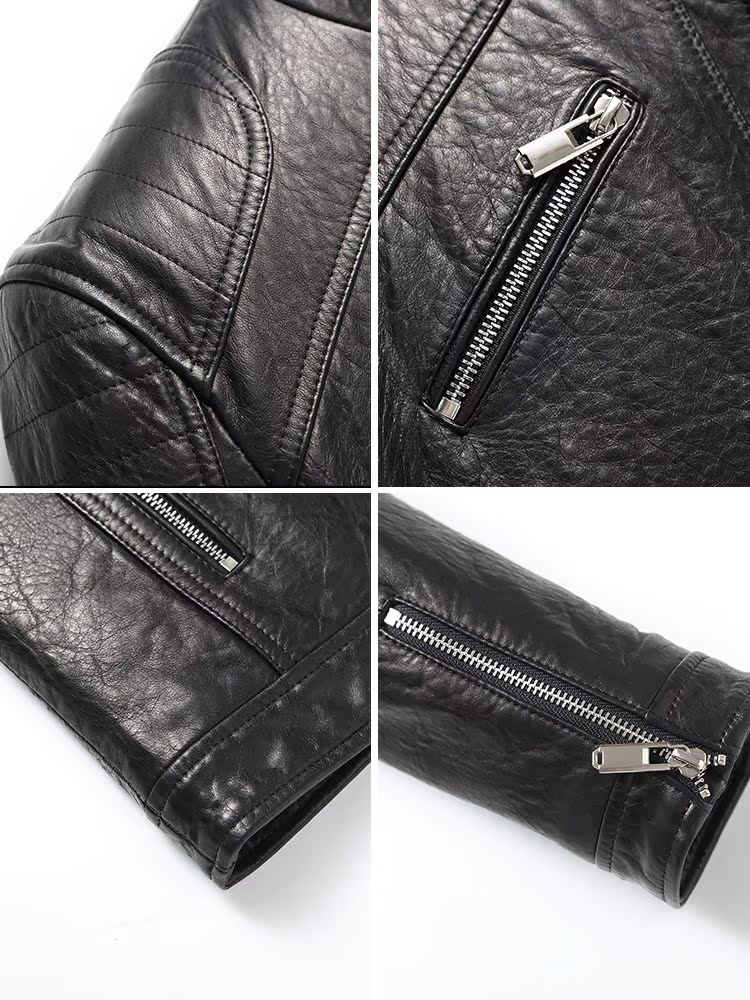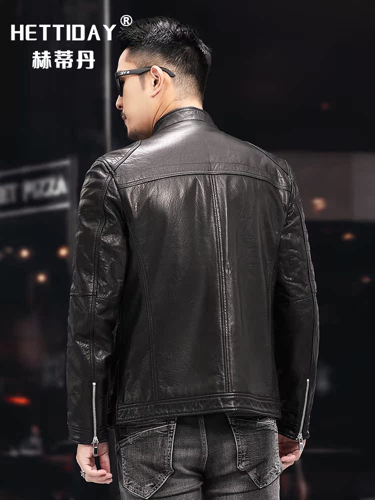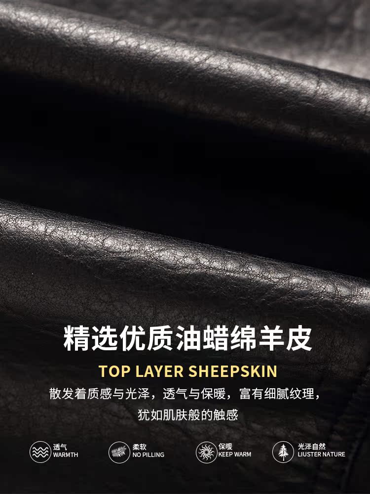 Haining's new personalized leather jacket men's oil wax sheepskin hunting leather jacket slim handsome fashion trendy coat