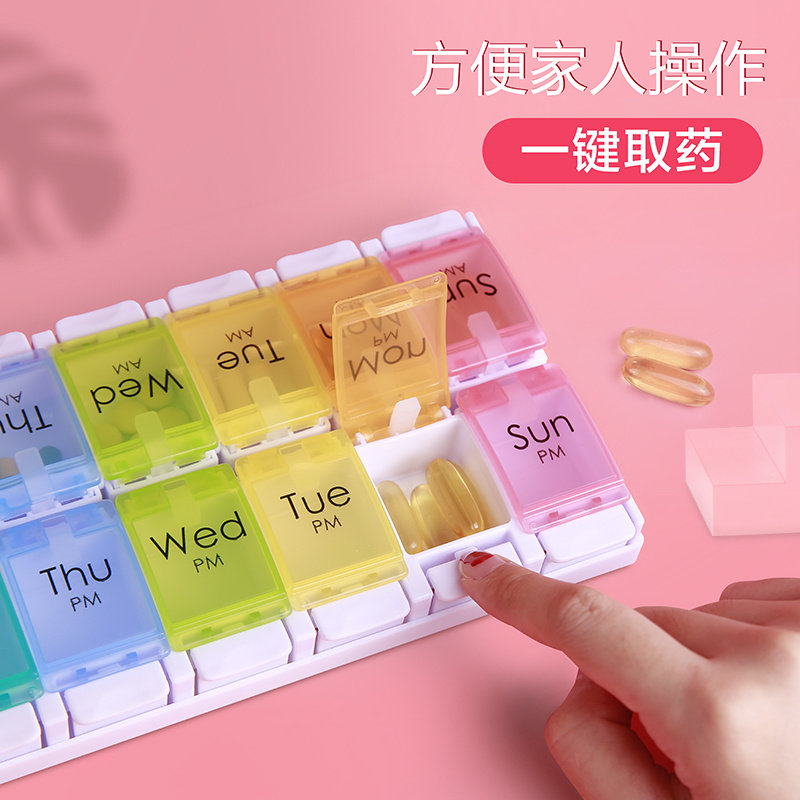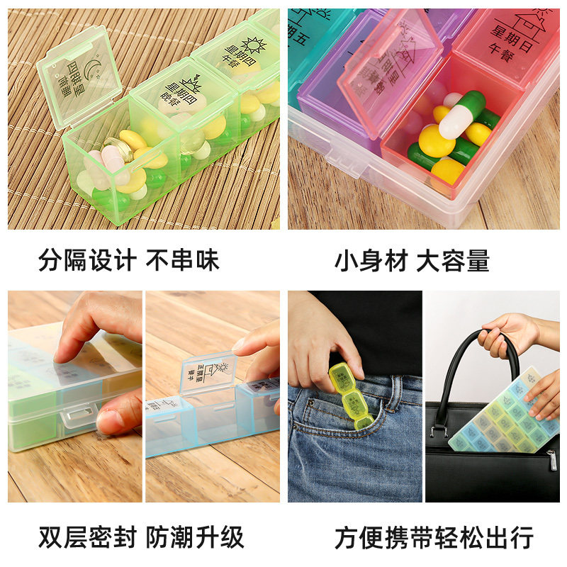 Ingot box, medicine box, portable 7-day large capacity, one week, morning, middle and evening medicine ingot packaging box, small mini