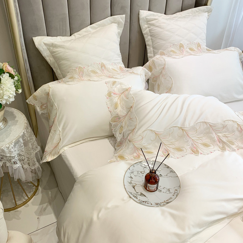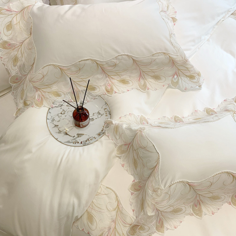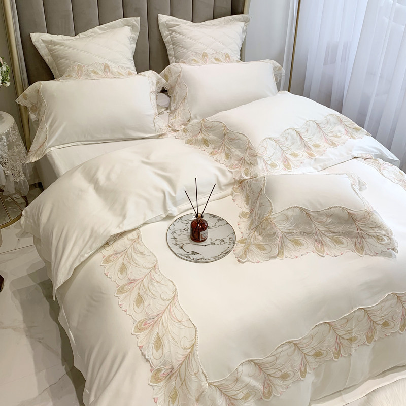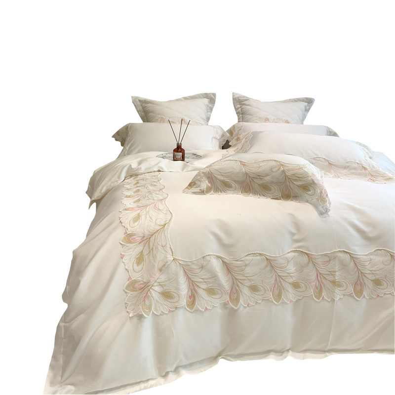 JWEYOUN High-end Italian Feather Cotton Four-piece French Romantic Lace Quilt Cover Bedding