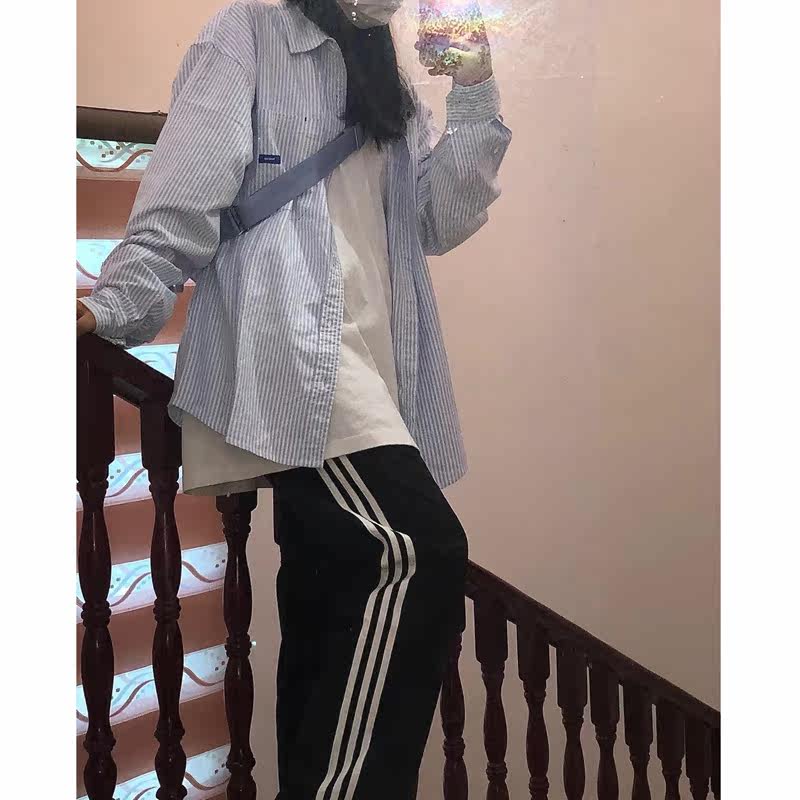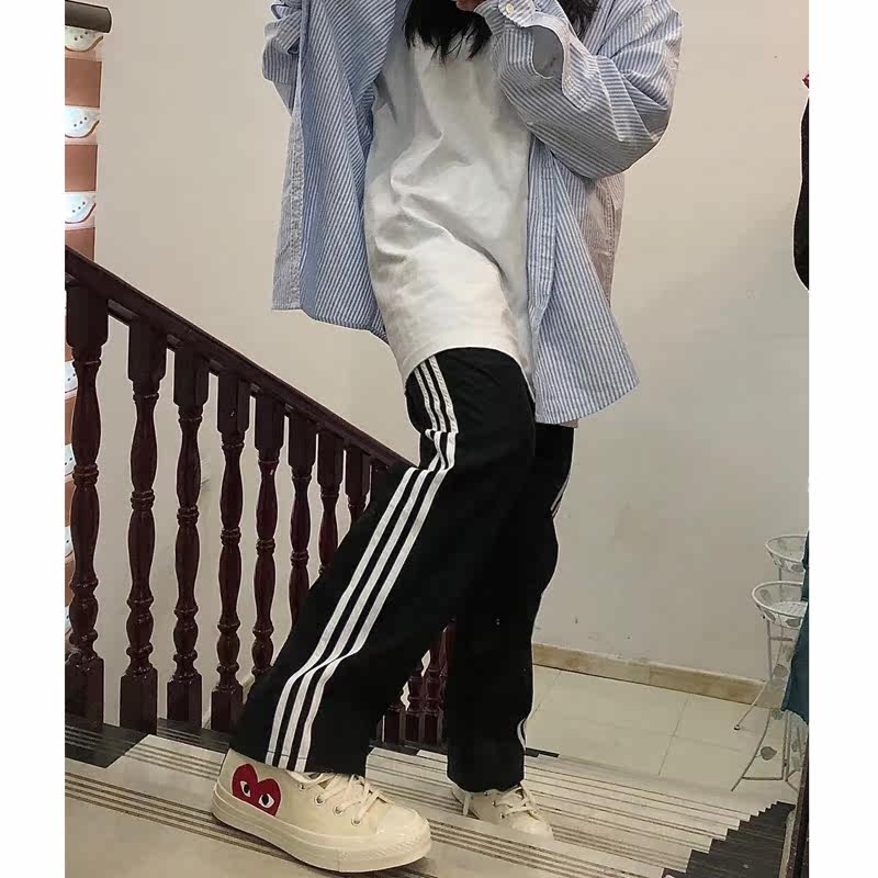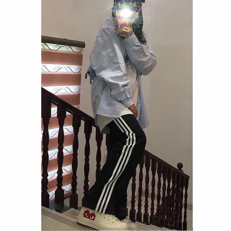 Striped sweatpants women's 2021 spring and autumn loose casual straight Hong Kong flavor bf high waist drape wide leg ins tide