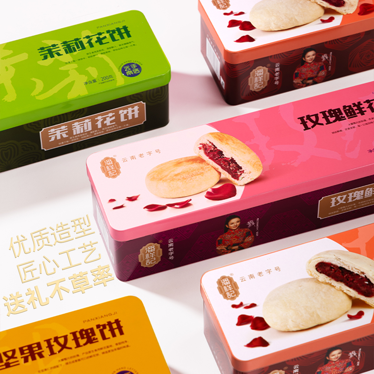 Pan Xiangji Rose Mooncake Tin Box Traditional Pastry Festival Gift Yunnan Specialty Flower Cake Gift Box