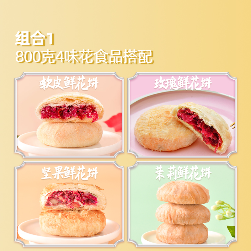 800g iron box flower cake (soft skin 200g, nuts 200g, jasmine 200g, rose 200g)
