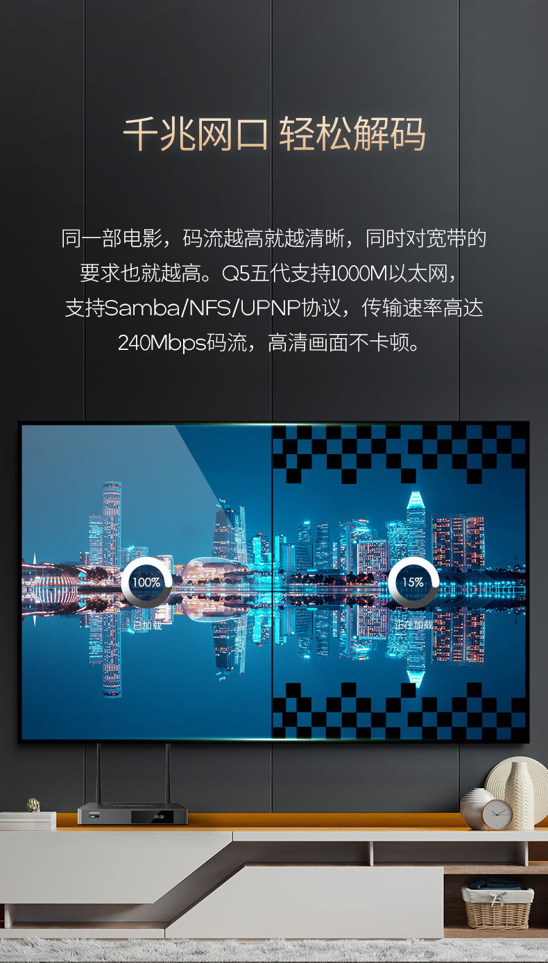 Seameidi Q5 Five Generations Ultra Clear Blue Light 4K Hard Disc Player 3D Android Smart Internet TV Set Up Box