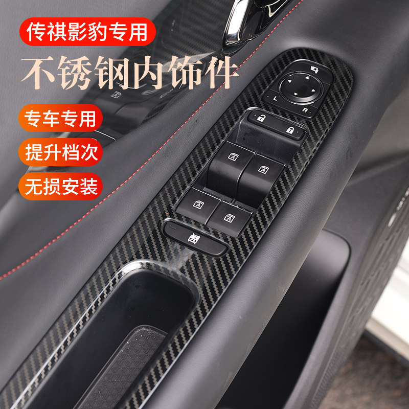 Suitable for GAC Trumpchi Shadow Leopard stainless steel window lift switch panel interior carbon fiber pattern decorative frame modification