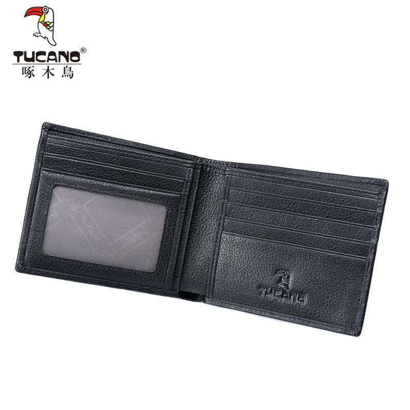 Woodpecker fashion men's wallet short thin wallet layer cowhide business horizontal casual Japanese and Korean men's wallet soft