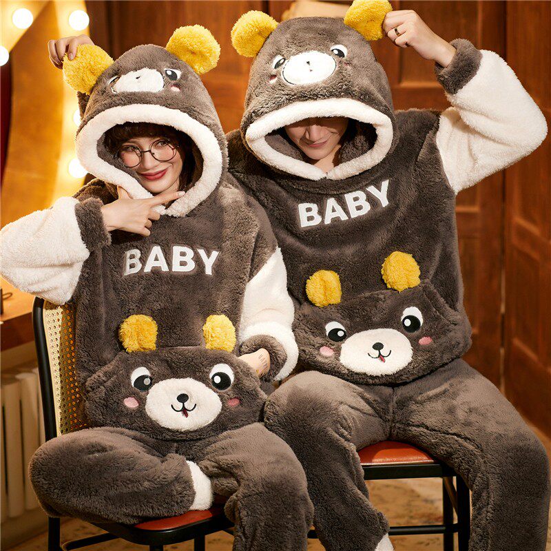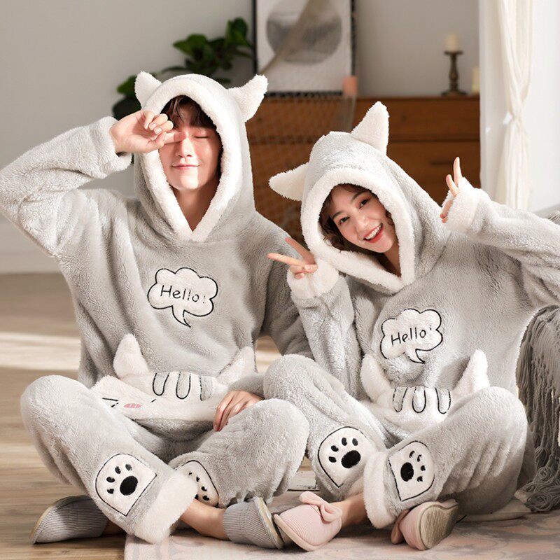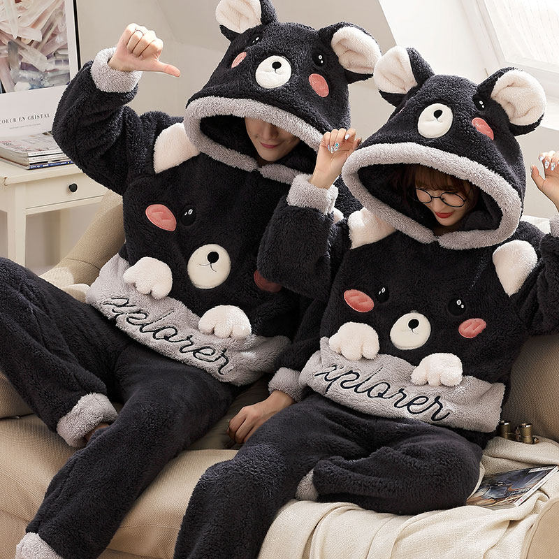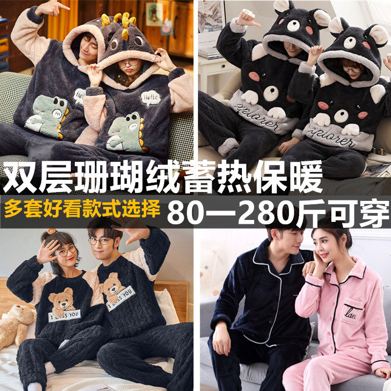 300 catty size couple pyjamas sleeping men's winter coral suede autumn winter plus suede thickened and fatter add up women's hat l