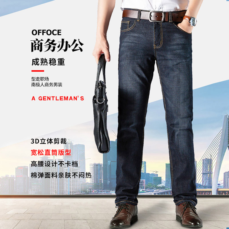 New Summer Male Jeans Casual Elastic Pants Thin loose middle-aged Dad Straight tube long pants work for work