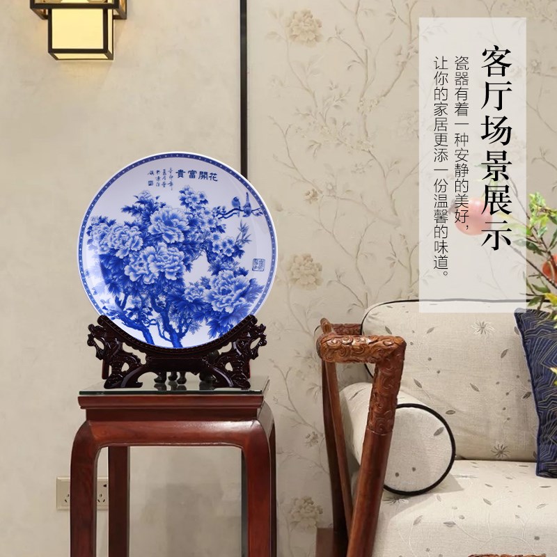 Jingdezhen ceramics blue and white porcelain hanging plate decoration plate decoration flower plate Chinese home countertop decoration craft gift decoration