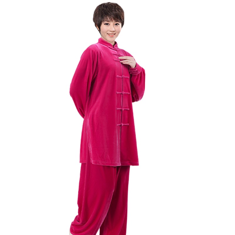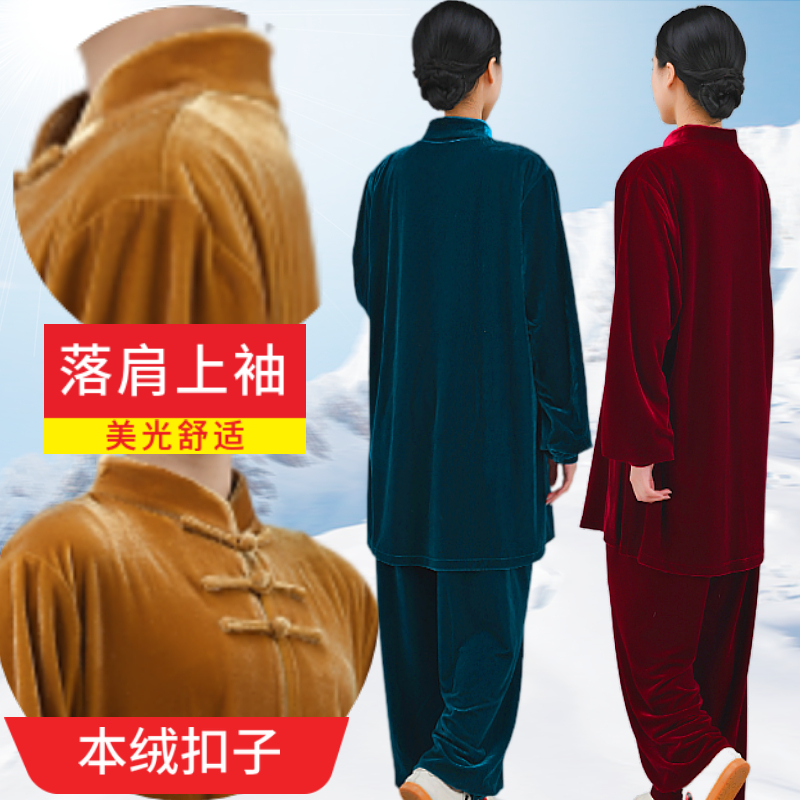 Autumn Winter Thickened Tai Chi Clothing Golden Velvet Martial Arts Practicing men and women taijiquan The long version of the taijiquan not down the velvet competition performance