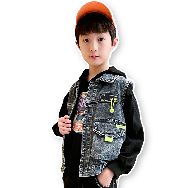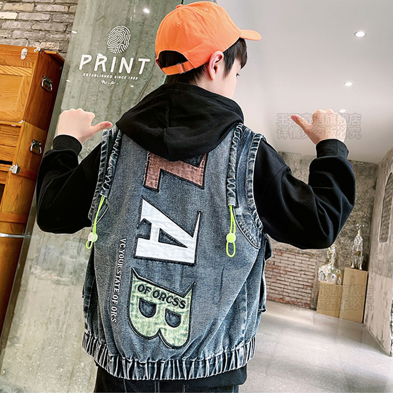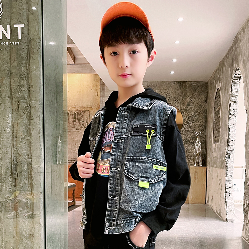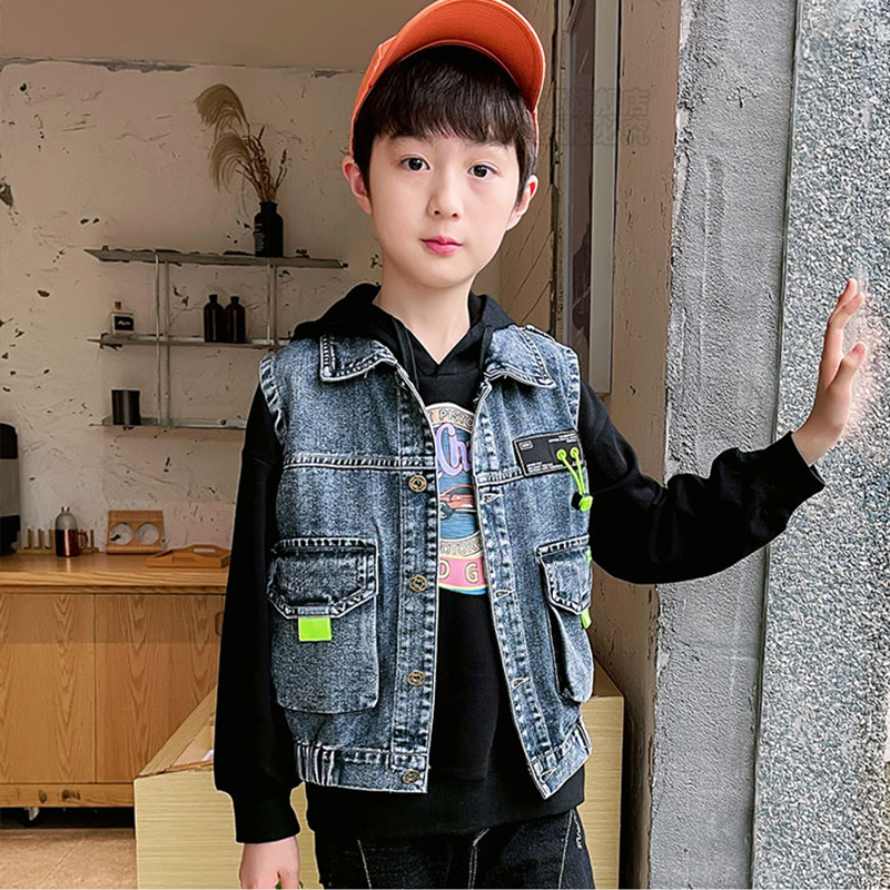 Boy cowboy overalls Machia 2022 Spring and autumn clothes new jacket jacket Ocean Fried Street Big Child Outwear