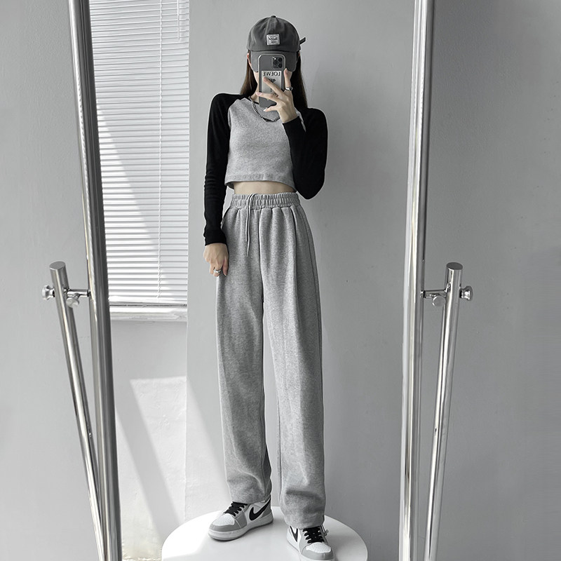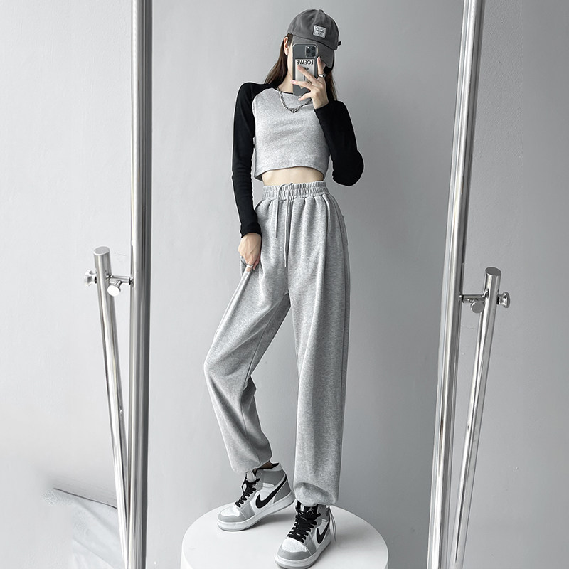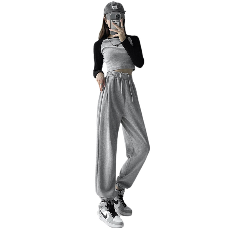 Sports Pants Woman High Street Ins Tide 2022 New Summer Thin style casual wide pants grey Slim Skinny swearpants