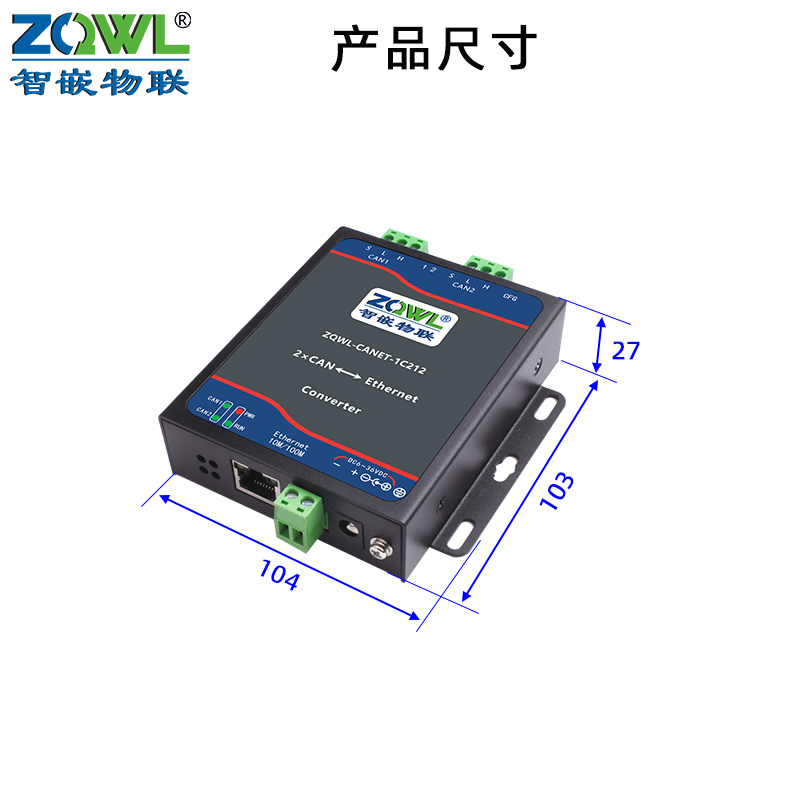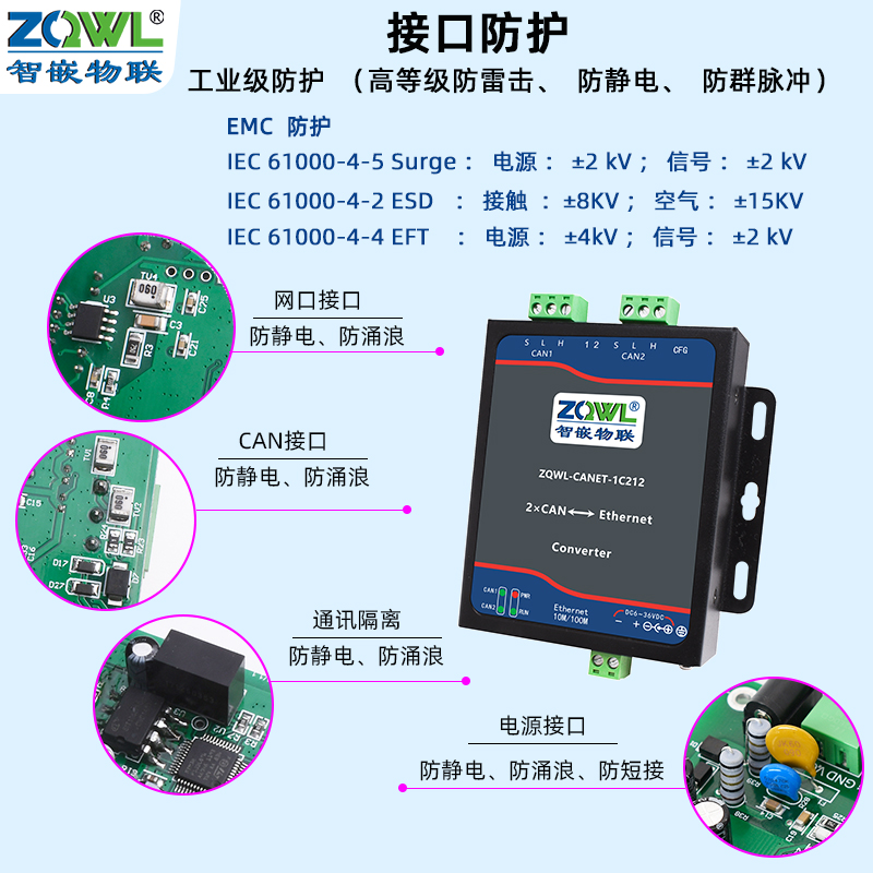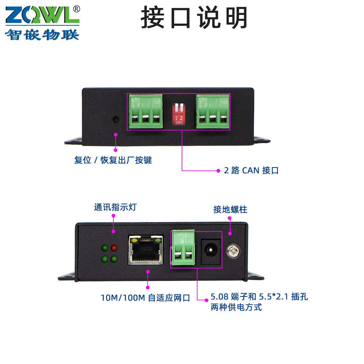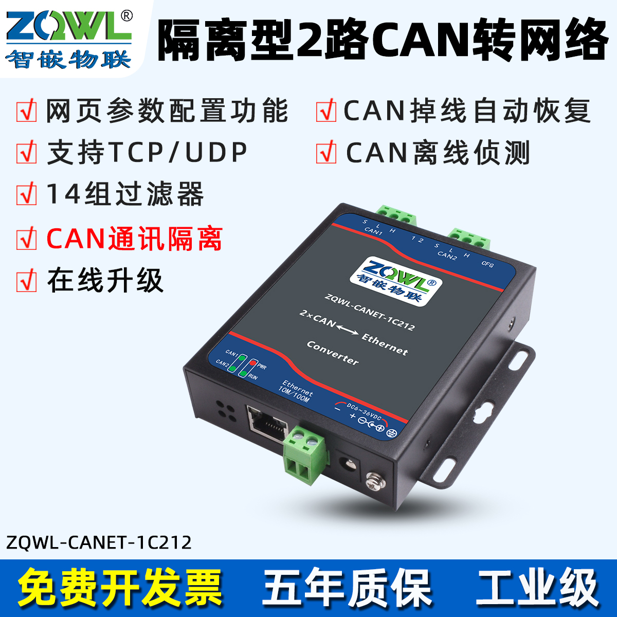 (Zhi-embedded Internet of Things) Isolation type 2-way CAN-turn network CAN bus protocol turn B Ethernet RJ45 Internet interface Communication isolation Industrial-level CANBUS converter debugger