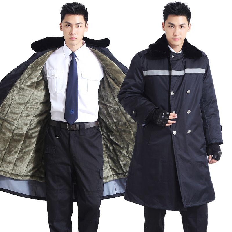 Black Cotton (long-plate knee) thickened white cotton) non-removable black service coat (long-plate knee) Xinjiang white cotton) black duty coat with reflective strip (long-plate knee)