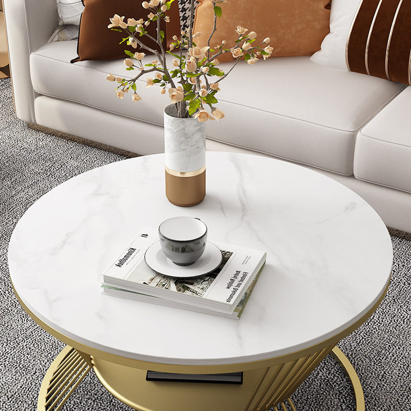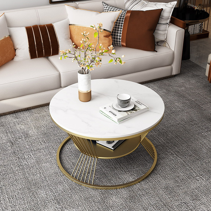 Nordic wrought iron net red rock plate coffee table small apartment simple small tea table home living room light luxury marble small table