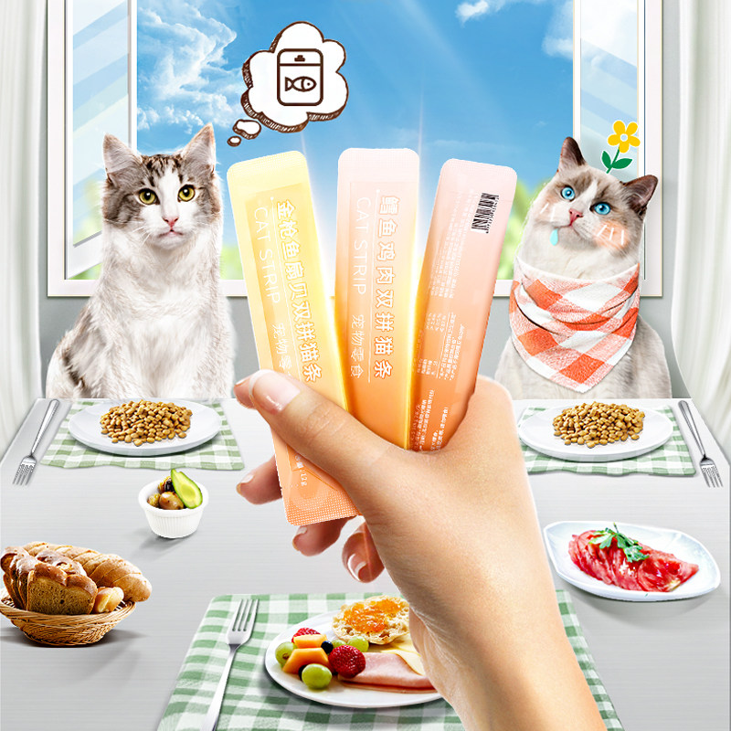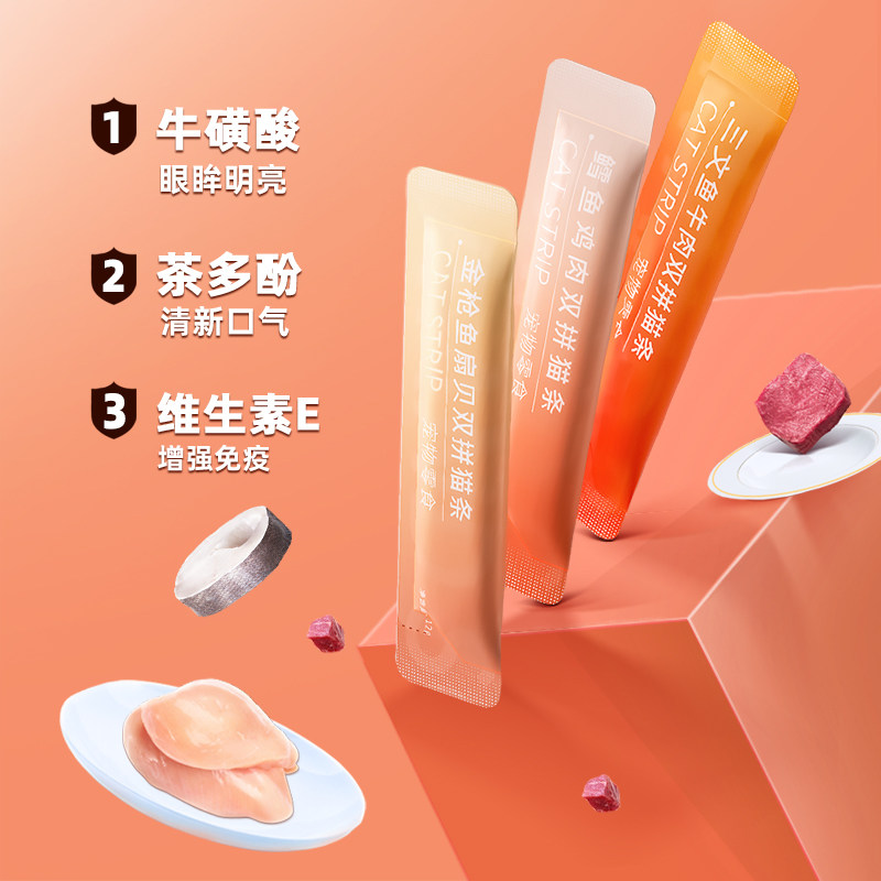 Petree double spell cat strips cat snacks mixed taste 12g*18 canned meat mud wet food canned nutrition fattening hair cheeks