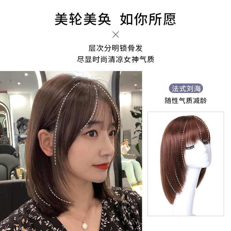 Unice Chunmei wig female long hair air bangs collarbone hair natural full headgear age reduction real hair wig set