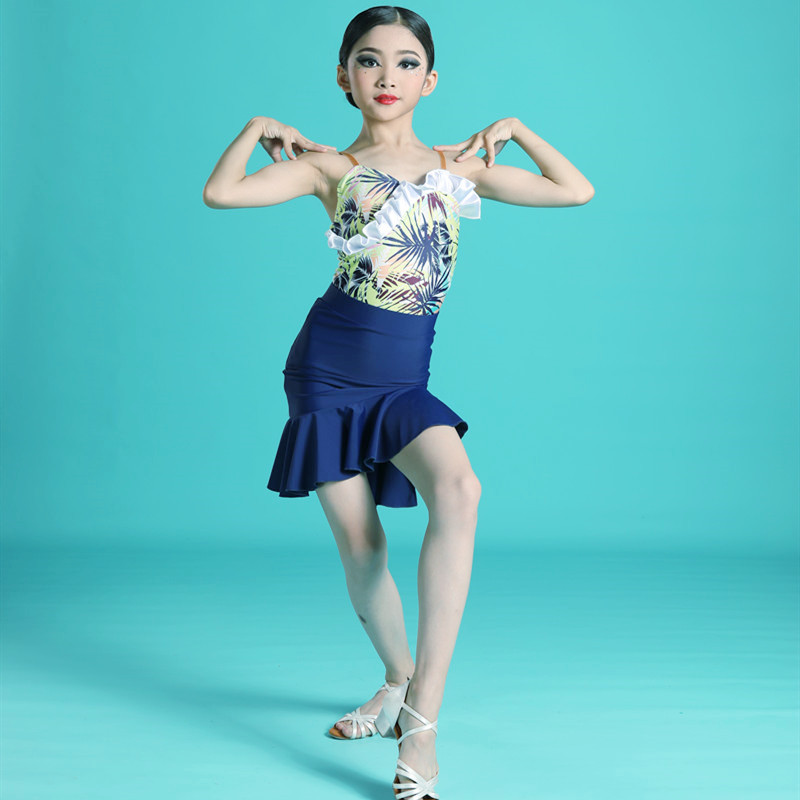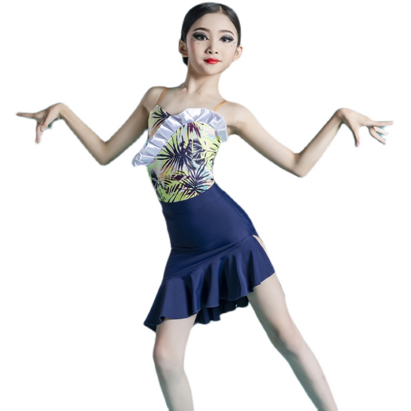 Net red young Latin dance dress female spring and summer children hanging suit match training suit performing dance skirt