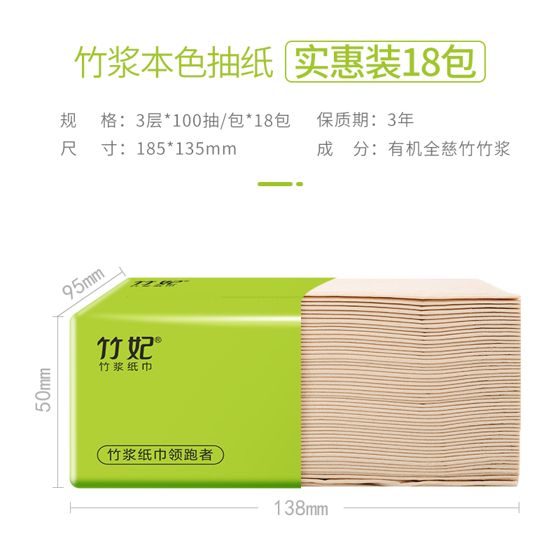 Bamboo Princess Bamboo Pulp Color Extraction Style Toilet Paper Whole Box Home Flagship Store Officer Net Not Bleached Food Grade Napkins 18 Pack 3 layers
