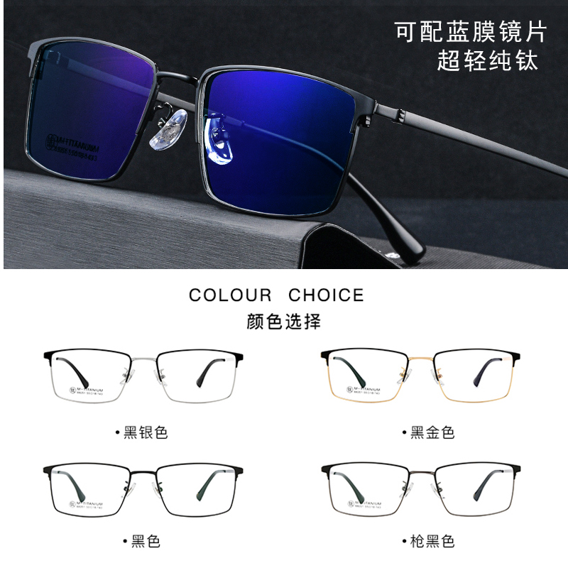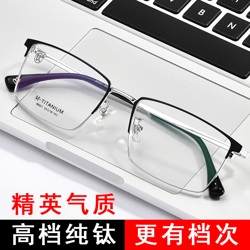 Myopia Glasses Men's Super Light Pure Titanium Eyeframes Anti-Blue Light Can Be Equipped With Degree Women Full Frame Discoloration Astigmatism Spectacle Frame