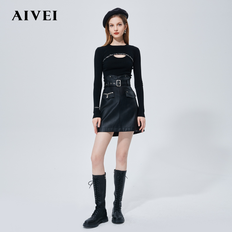 AIVEI Xinhe Aiwei 2022 Spring new product sweet and cool high waist A word PU leather dress hip short skirt N066S061