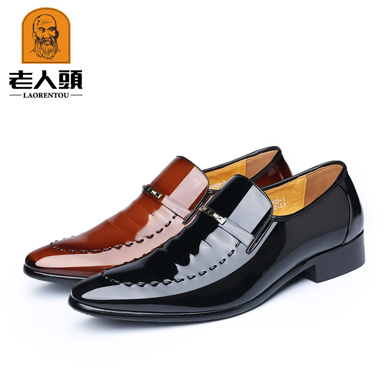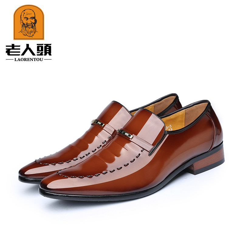Elderly Head Casual Business Men's Leather Shoes Head Layer Bull Leather A Foot foot Shoes Young Genuine Leather Bridegroom Groom Wedding Shoes