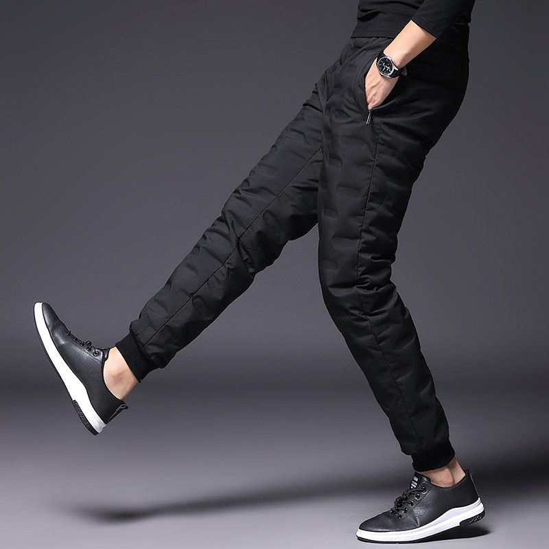 Winter down pants male outwear with thickened warm anti-chill white goose down pressed rubber Young men to fix small foot casual cotton pants