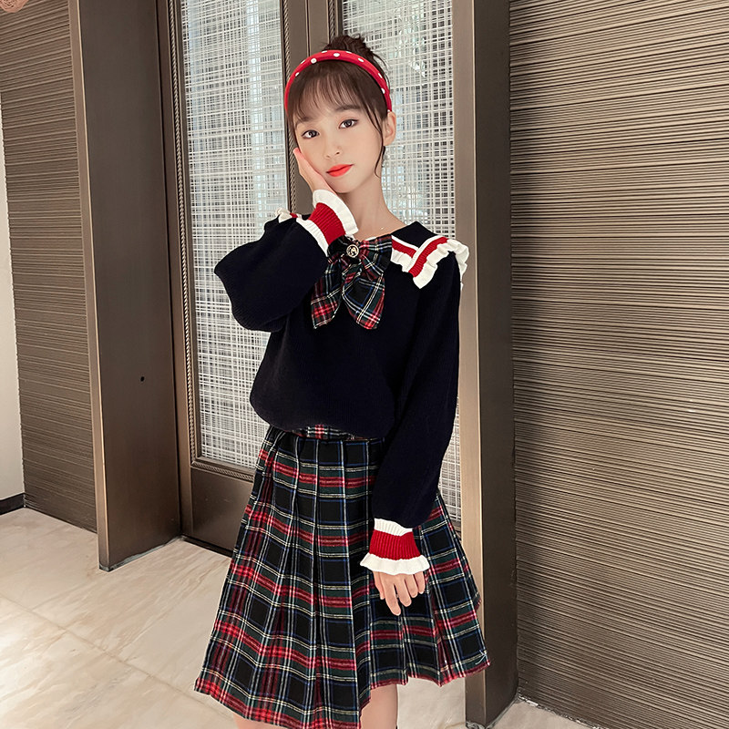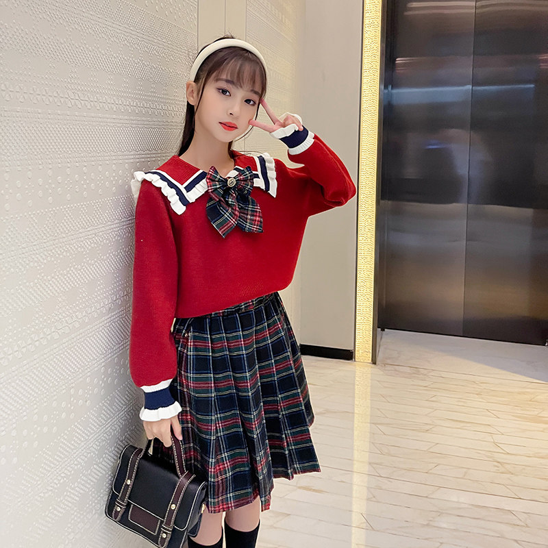 Korean version autumn and winter long-sleeved children's sweater baby spring and autumn knitted sweater 10-year-old children's clothing lace collar college suit