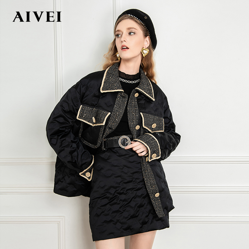 AIVEI Hinca Ai Weiwei 2021 Winter New Coarse Flowers In the Down Jacket Half Body Skirt Suit N0560130