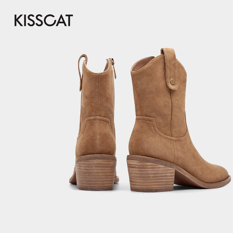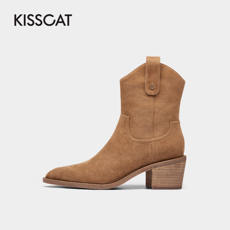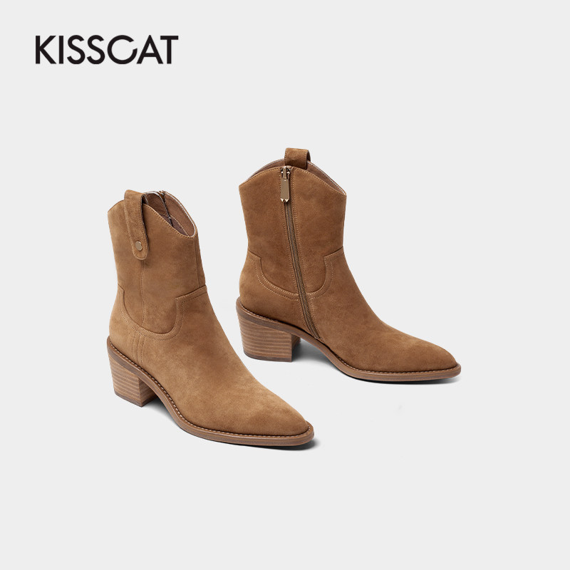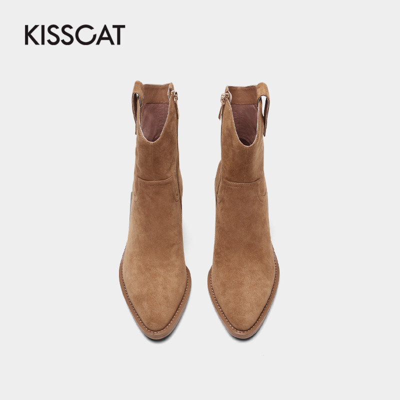 Kissing cat winter European and American trend personality high-end sense suede riding boots handsome fashion pointed toe fashion boots women