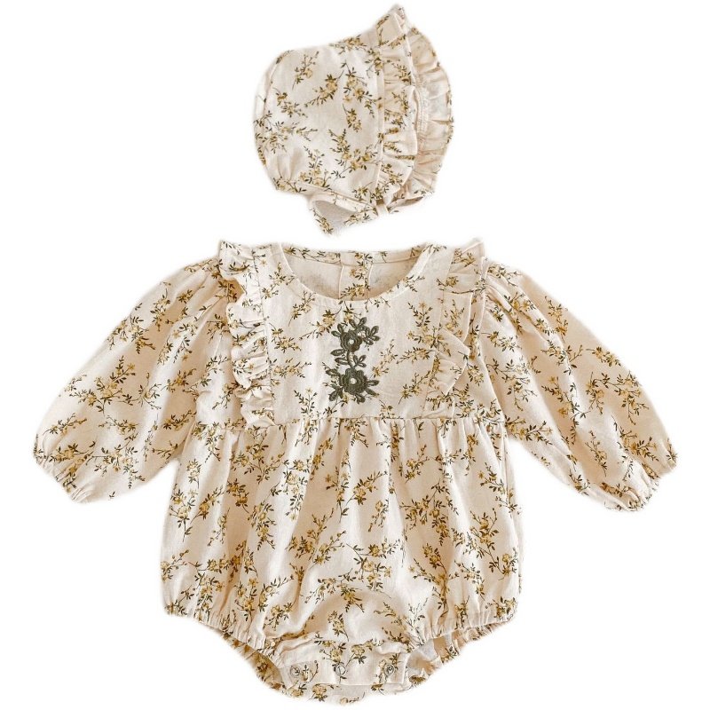 2022 Chunqiu Ji Meng Baby baby girl embroidered with thickened long sleeve khae newborns dress to be delivered with a hat